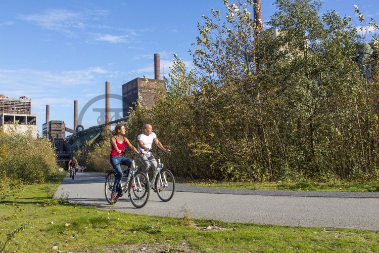 Paar auf Fahrrädern auf der Ringpromenade auf der Kokerei