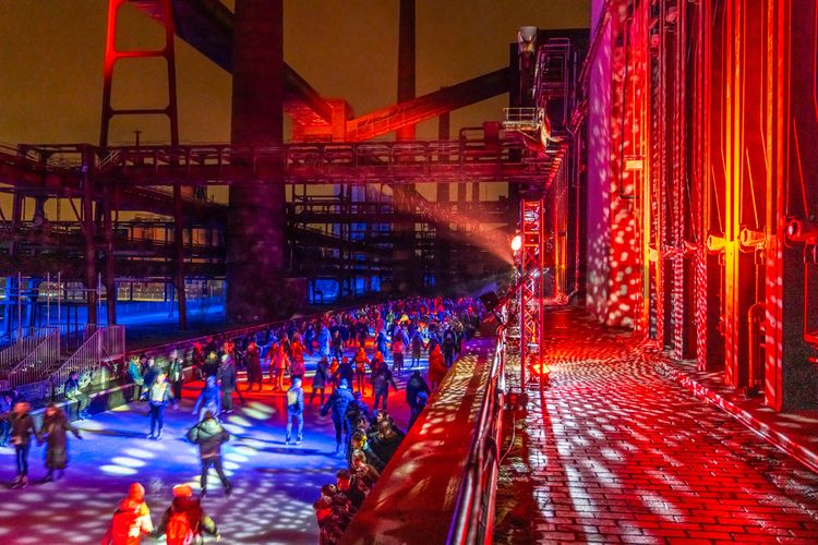 Im Winter verwandelt sich das große Wasserbecken am ehemaligen Druckmaschinengleis auf der Kokerei Zollverein in die 150 Meter lange Zollverein-Eisbahn, die zum Schlittschuhlaufen in faszinierender Atmosphäre einlädt. Die Eisbahn ist jährlich von Anfang Dezember bis Anfang Januar geöffnet.
