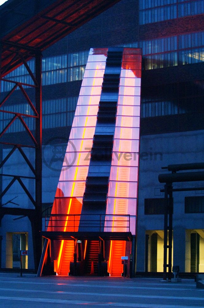 Orange leuchtende Rolltreppe an der Kohlenwäsche