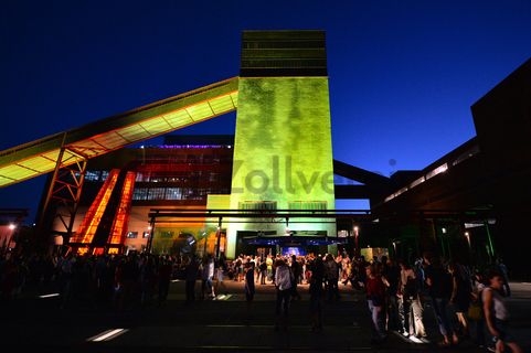 Zechenfest 2014: Besucher auf dem Forum Kohlenwäsche mit beleuchteter Rolltreppe