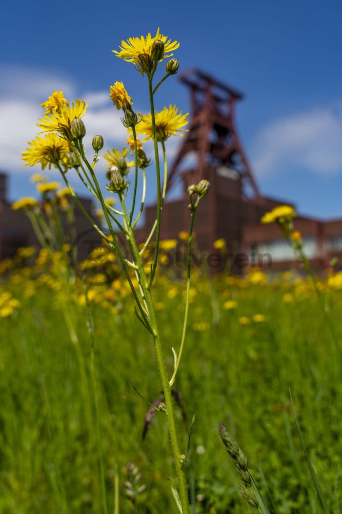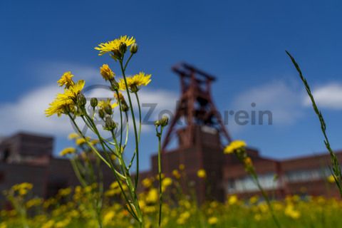 Löwenzahn vor dem Doppelbock-Fördergerüst