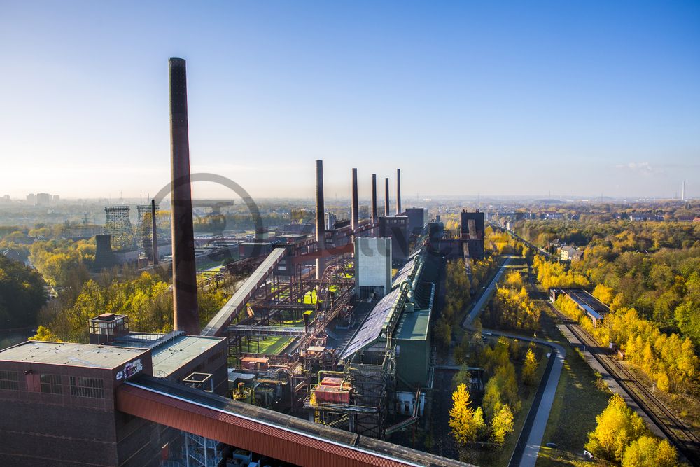Luftbild der Kokerei, im Vordergrund der Industriewald und der Portalkratzer