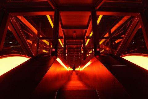 Orange leuchtende Rolltreppe an der Kohlenwäsche