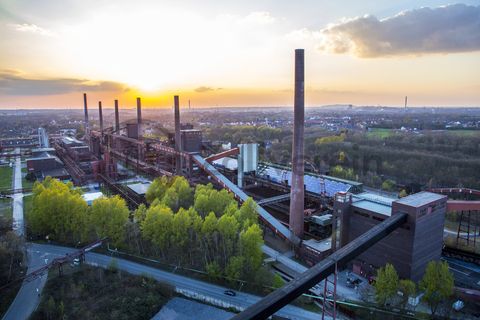Luftaufnahme der Kokerei, im Hintergrund Schacht XII und 1/2/8 Mai 2016