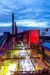 Das große Wasserbecken am ehemaligen Druckmaschinengleis auf der Kokerei Zollverein verwandelt sich im Winter in die 150 Meter lange Zollverein Eisbahn, die zum Freizeitvergnügen in faszinierender Atmosphäre einlädt. Allabendlich wird die Fläche mit der Installation „Monochromatic Red and Blue“ (1999) von Jonathan Speirs und Mark Major zu einem beeindruckenden Lichtkunstwerk.